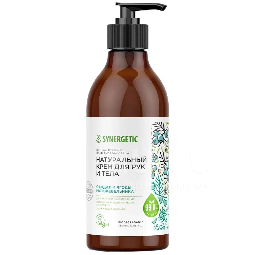 Крем для рук и тела, Synergetic, Сандал и ягоды можжевельника, увлажнение, питание, 380 мл