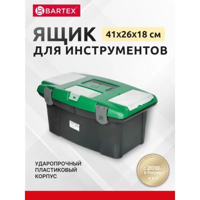 Ящик для инструментов, 38х18.5х19 см, пластик, Bartex, пластиковый замок, 2780355010