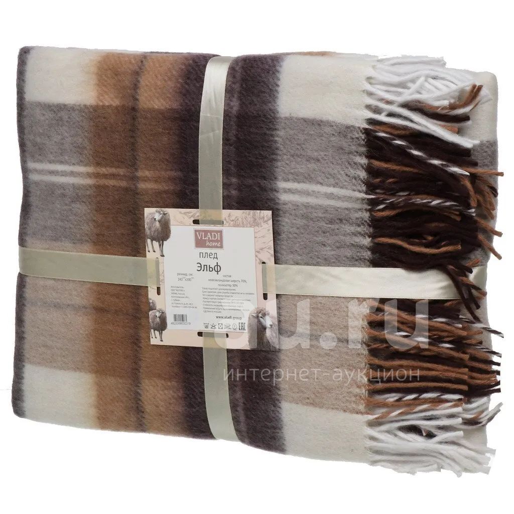 Плед 1.5-спальный, 140х200 см, 70% новозеландская шерсть, 30% полиэстер, Vladi, Эльф, Noah, бело-бежево-коричневый