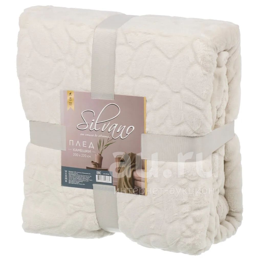Плед евро, 200х220 см, 100% полиэстер, Silvano, Камешки, молочный