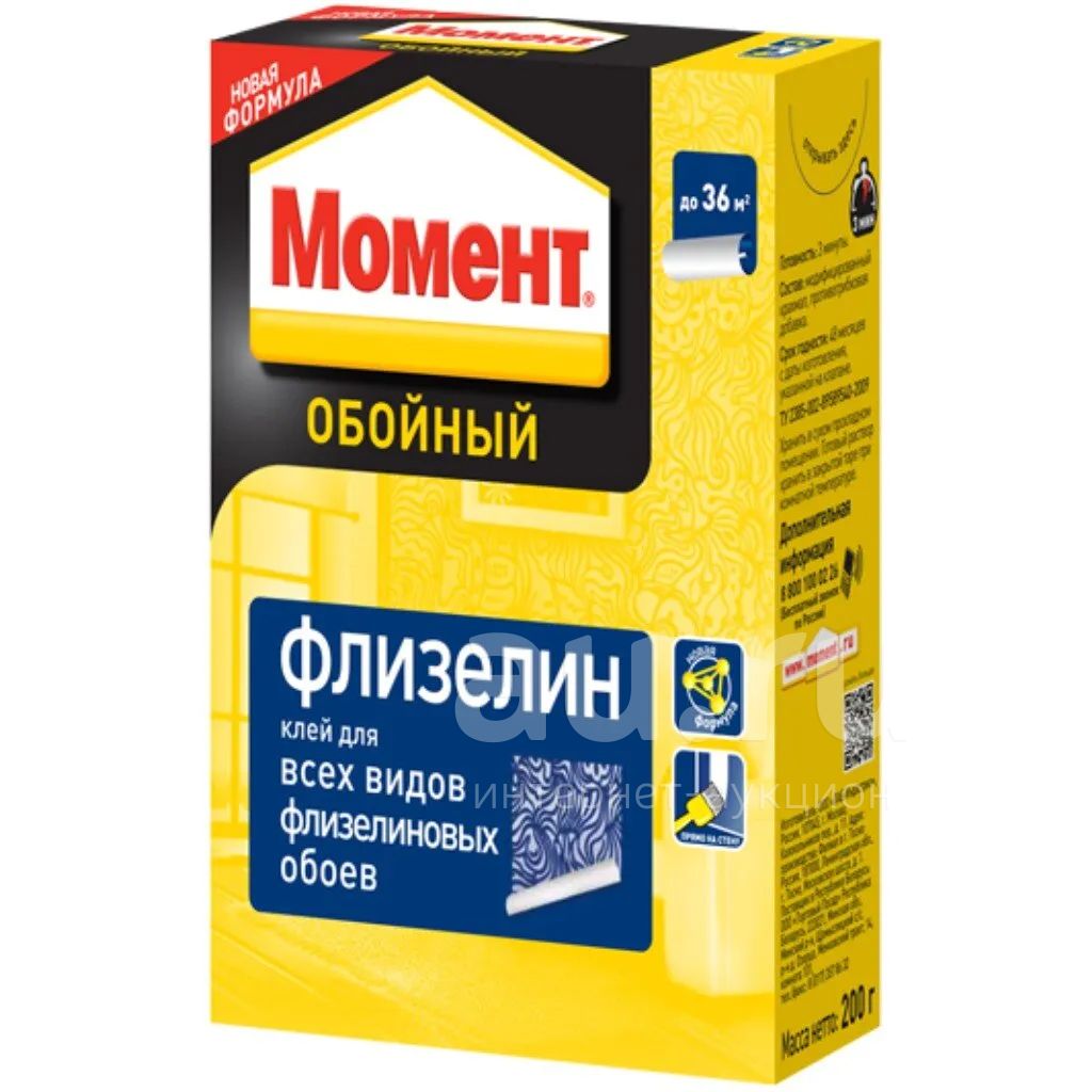 Клей для флизелиновых обоев, Момент, Флизелин, 200 г, картонная коробка, 3000293