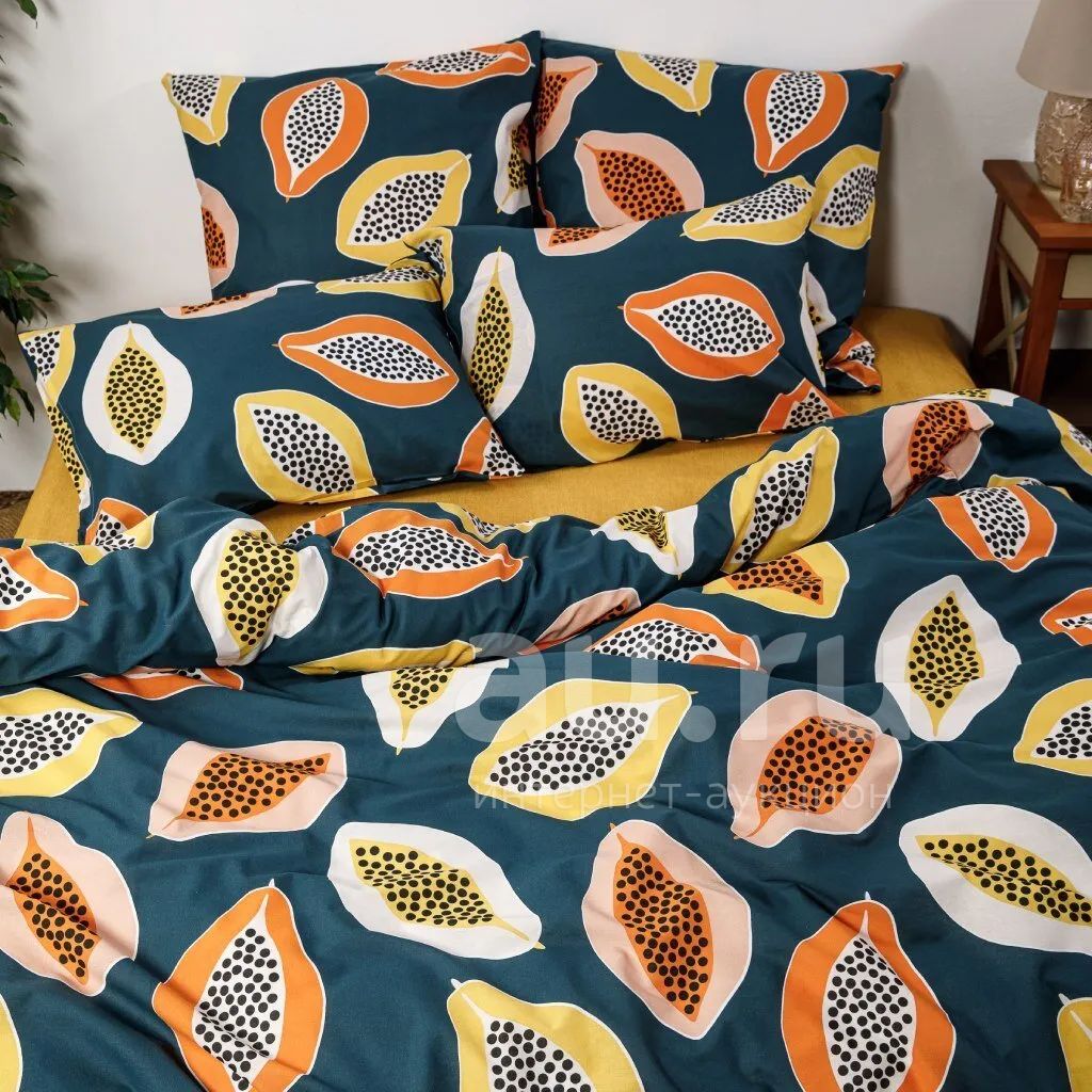 Постельное белье евро, простыня 200х215 см, 2 наволочки 70х70 см, пододеяльник 200х215 см, Ночь нежна, бязь, Папайя