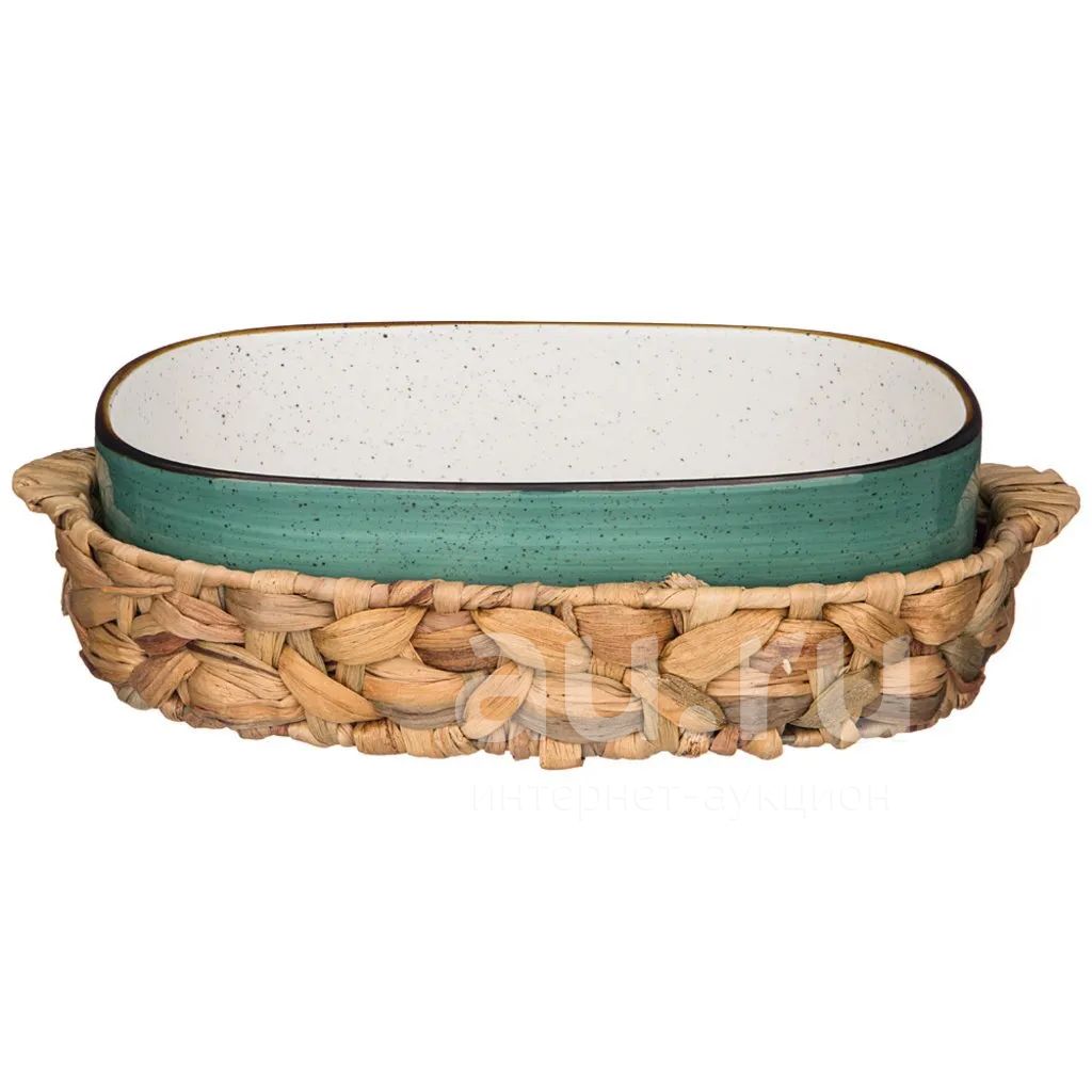 Блюдо фарфор, 25х33х9 см, 3 л, овальное, для запекания в плетеной корзине, мятное, Bronco, Nature, 263-1091
