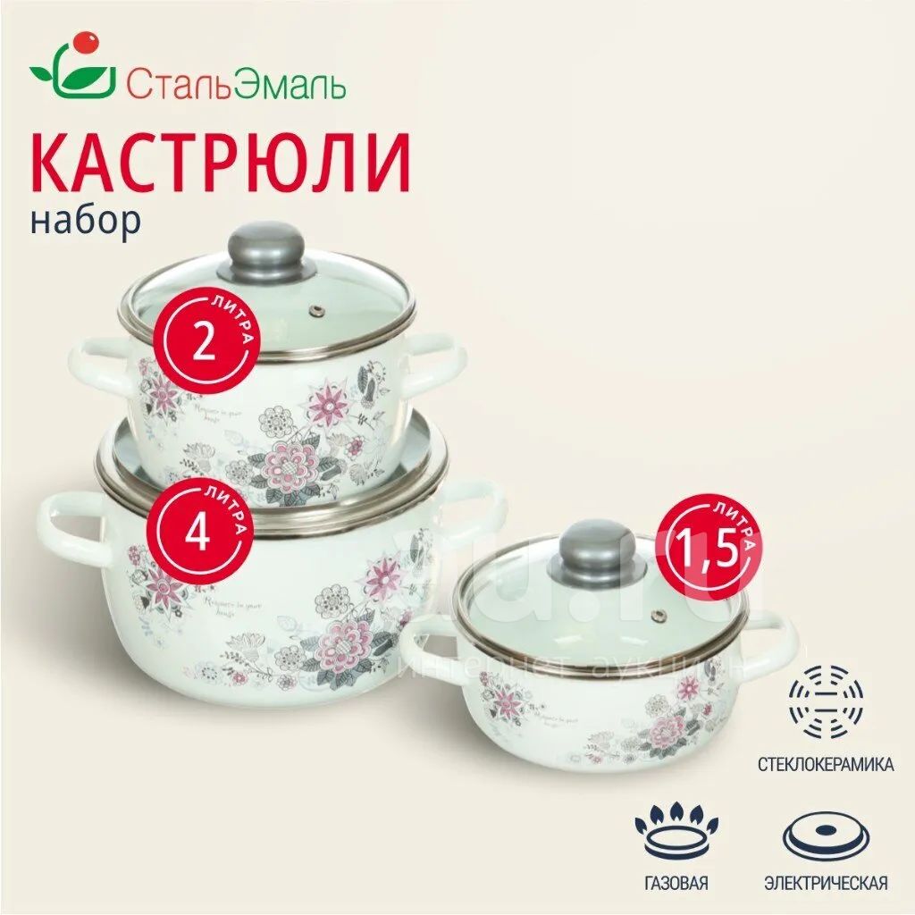 129руб.Набор посуды эмалированная сталь, 3 предмета, кастрюли 1.5,2,4 л, инд...