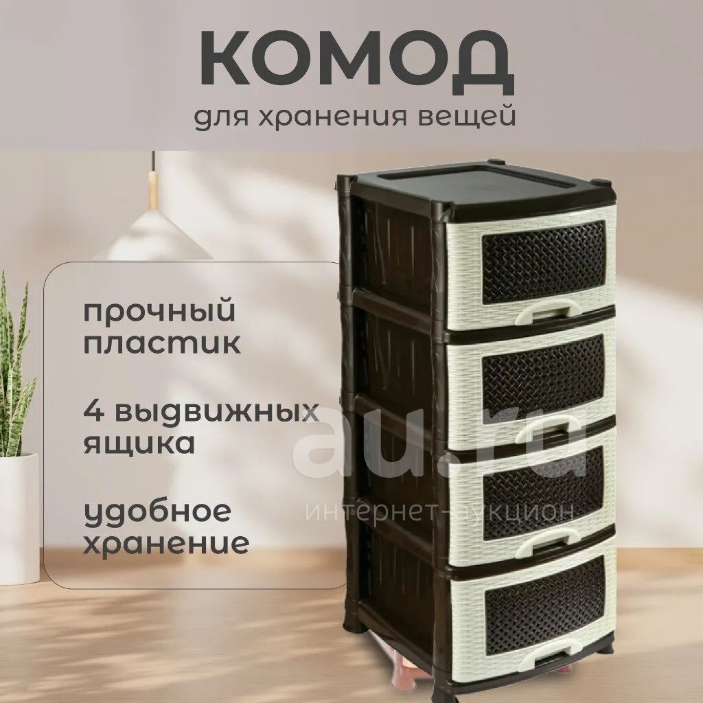1 290руб.Комод 4 ящика, Плетенка, 39х47х95 см, бежево-коричневый, 0354/035401,...