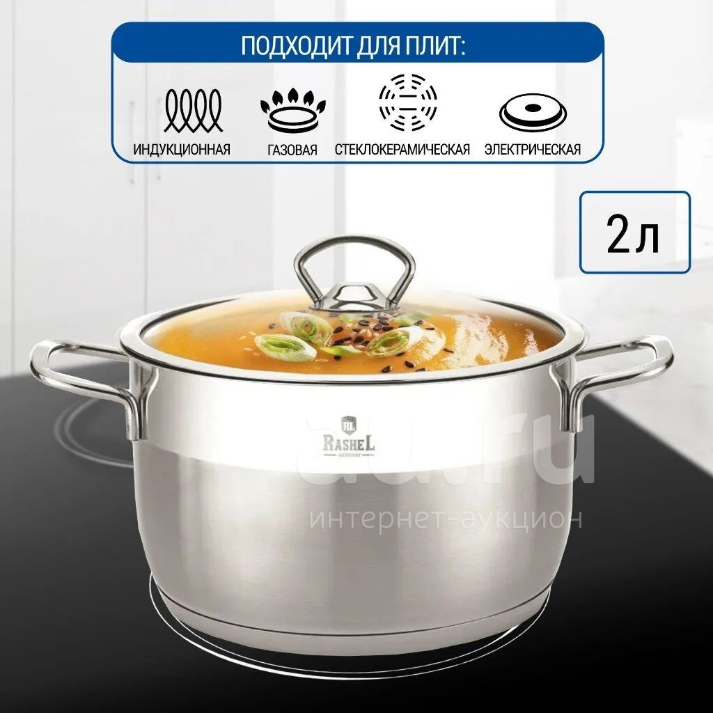 Кастрюля RasheL 2 л из нержавеющей стали 18/10 с капсульным дном для индукции — идеальный выбор для здорового и удобного приготовления блюд дома и на даче.