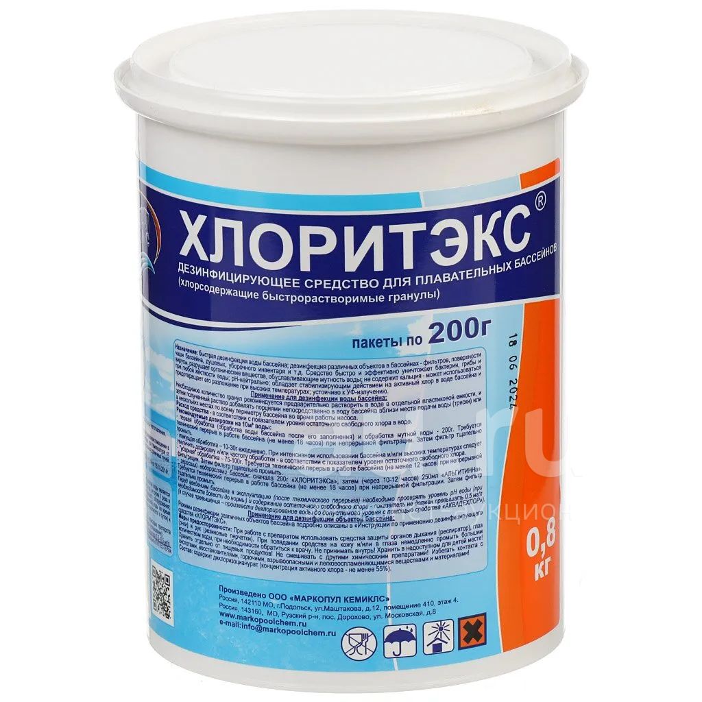 Средство для дезинфекции воды Маркопул Кемиклс, Хлоритэкс, М26, гранулы, 0.8 кг