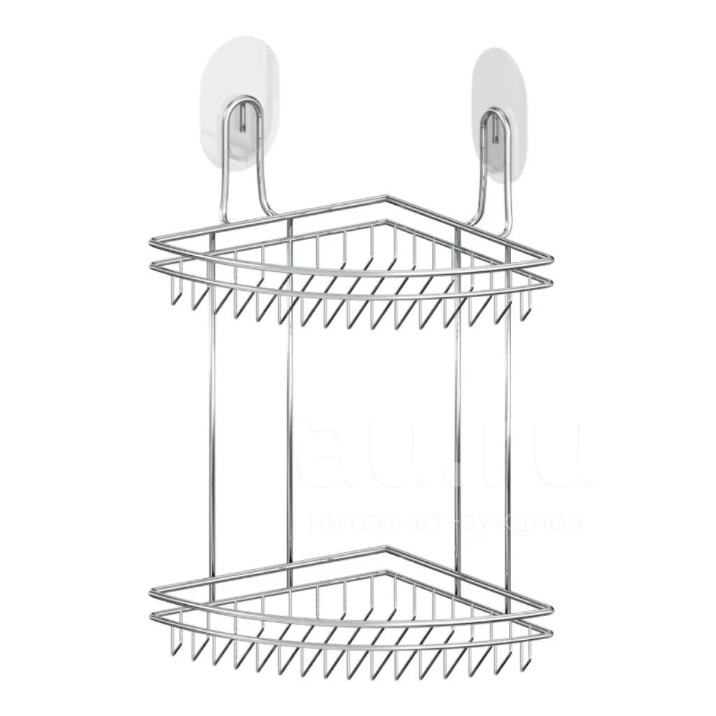 Полка для ванной металл, настенная, 2 яруса, угловая, 21х21х42 см, силиконовые крепления, LEMER, LERAFORM, LEM-LER14