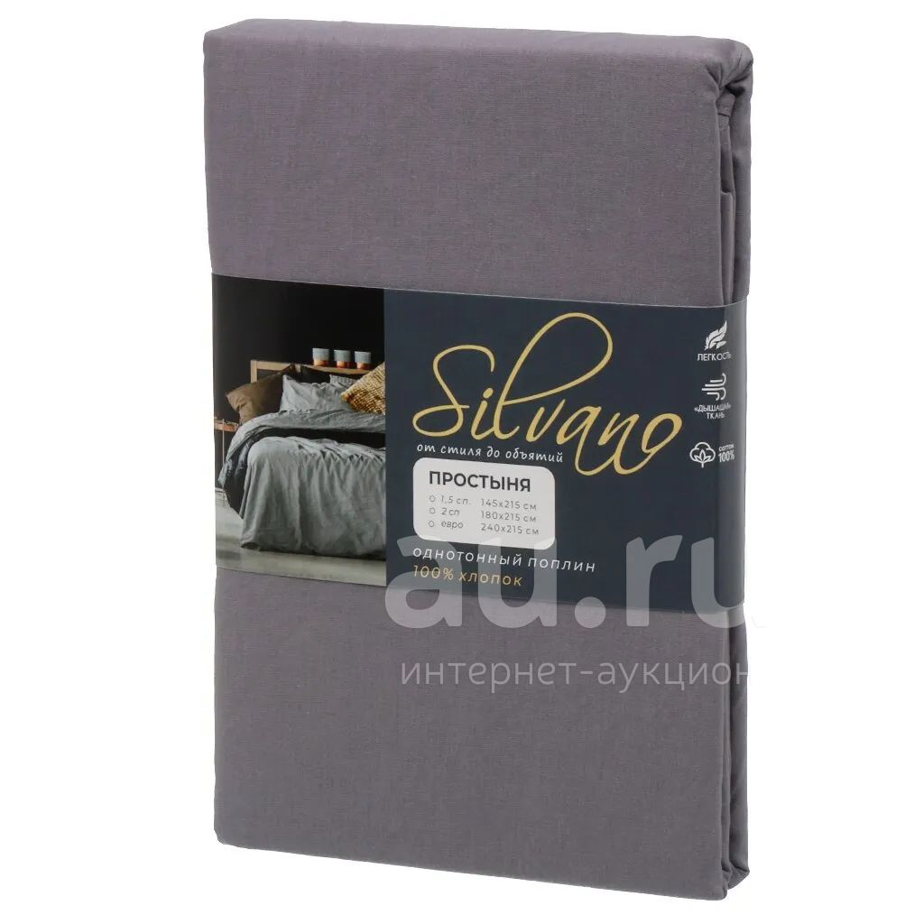 Простыня евро, 215 х 240 см, 100% хлопок, поплин, темно-серая, Silvano