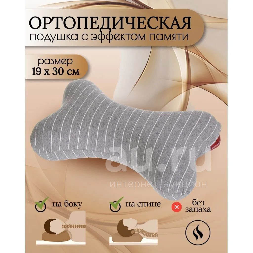 Ортопедическая подушка «Косточка» 19×30 см с эффектом памяти: комфорт для сна, гипоаллергенный чехол из хлопка, идеальна для дома, дачи и путешествий.