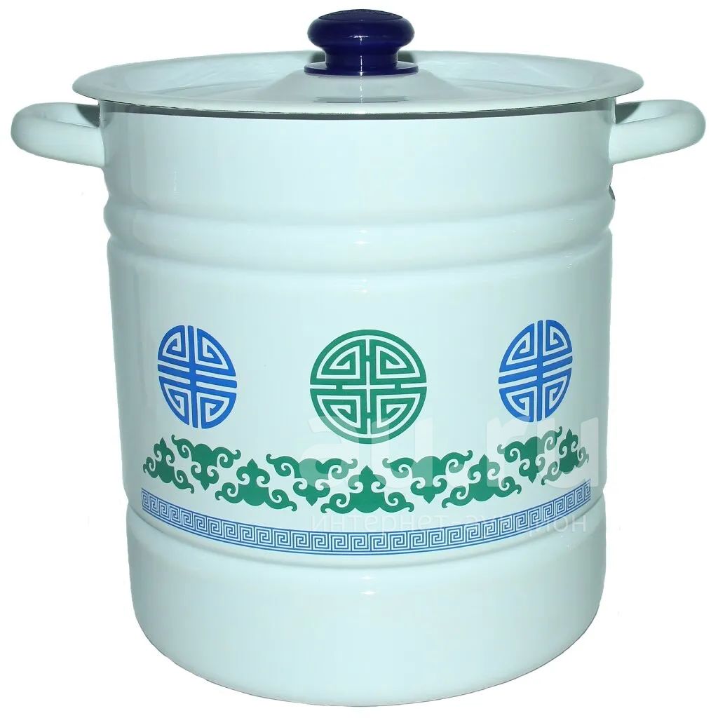 Мантоварка сталь, эмалированное покрытие, 12 л, 4 секции, Сибирские товары, крышка сталь, пластиковая кнопка, узор, сине-зеленая, С1724.3*128