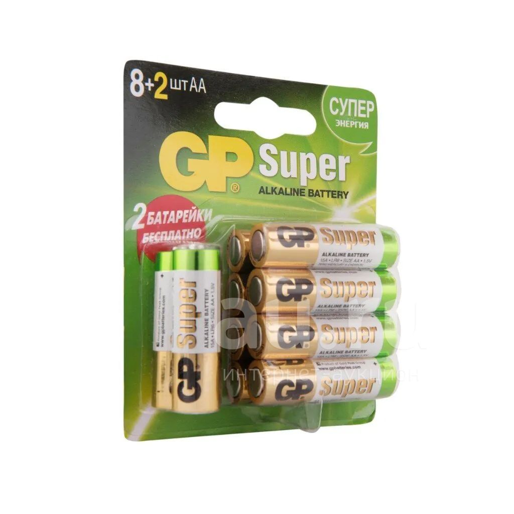 Батарейка GP, АА (LR6, 15A), Alkaline Super, щелочная, 1.5 В, блистер, 10 шт, 2724