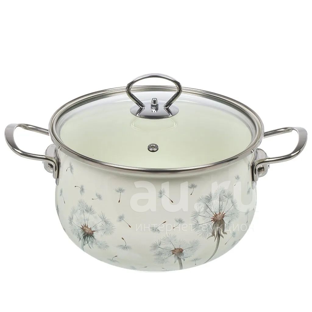 Кастрюля эмалированная сталь, 3.8 л, с крышкой, крышка стекло, Agness, Dandelion, 943-058, индукция