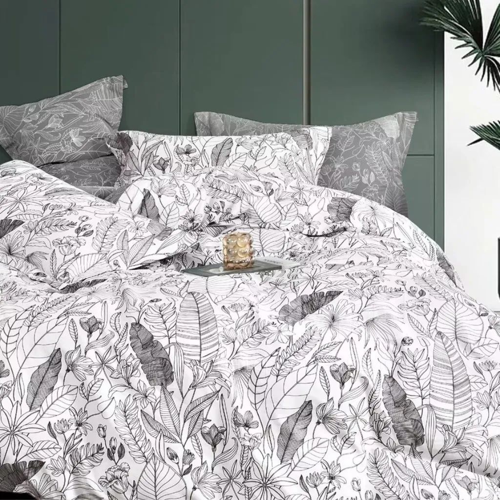 Постельное белье 2-спальное, простыня 230х240 см, 2 наволочки 50х70 см, пододеяльник 180х210 см, Cleo, сатин, коллекция Satin de Luxe, Растения 22/0091-S