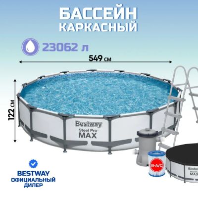 Бассейн каркасный Bestway, 305х76 см, Steel Pro, 56679, фильтр-насос, 4678 л