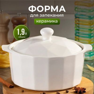 Кокотница керамика, 12х10х8 см, 0.2 л, круглая, с крышкой, Борисовская керамика, Ностальгия, ОБЧ14457903