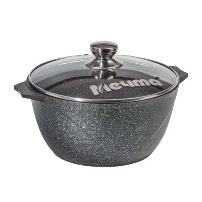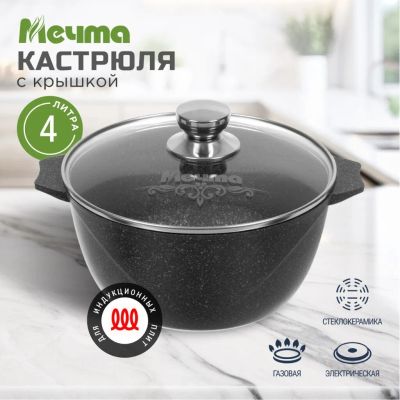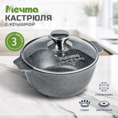 Кастрюля алюминиевая 8 л с антипригарным гранитным покрытием и стеклянной крышкой Мечта Гранит 48701 — оптимальный выбор для семьи и дачи: готовьте без пригорания, экономьте время и силы.