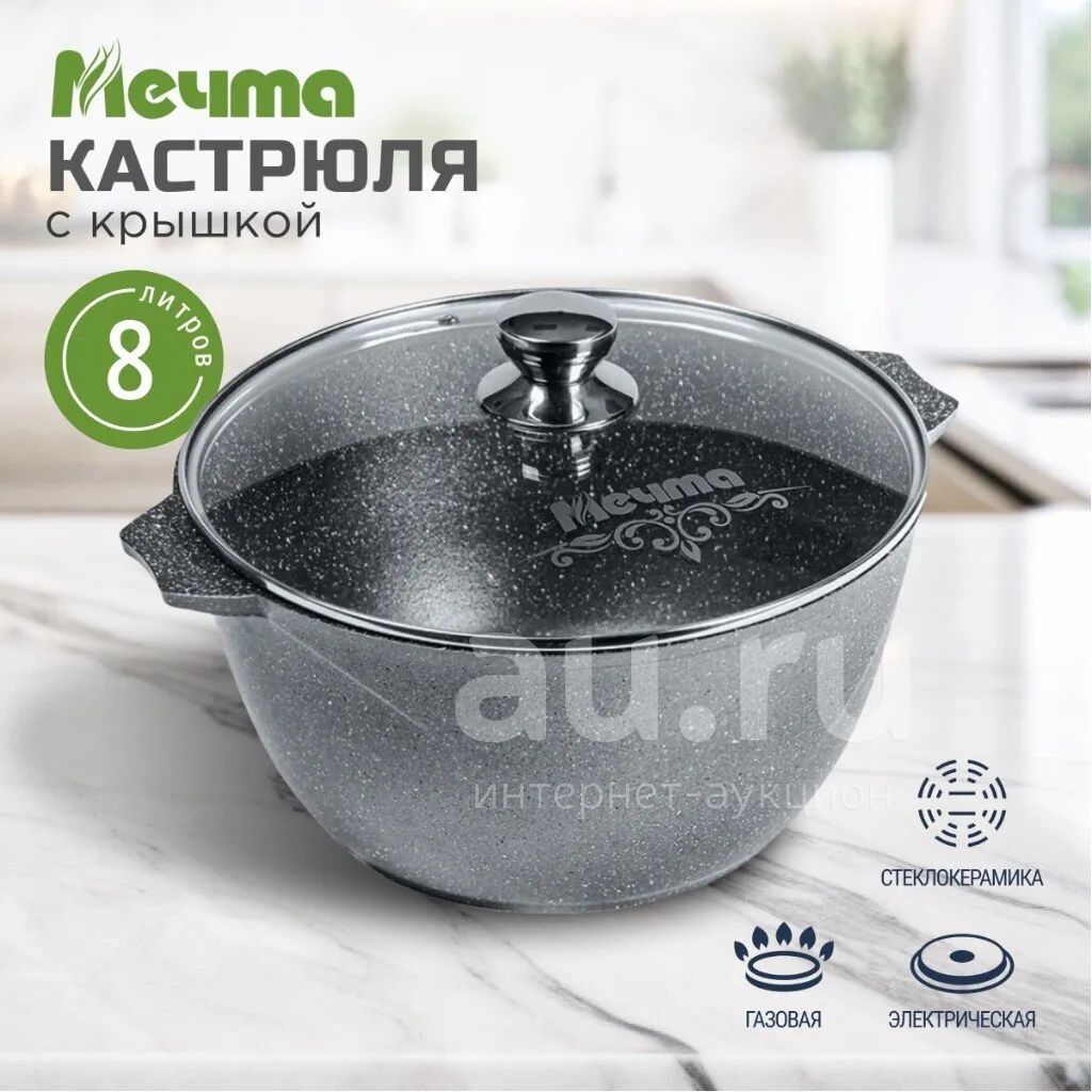 449руб.Кастрюля алюминий, антипригарное покрытие, 8 л, крышка стекло, Мечта,...