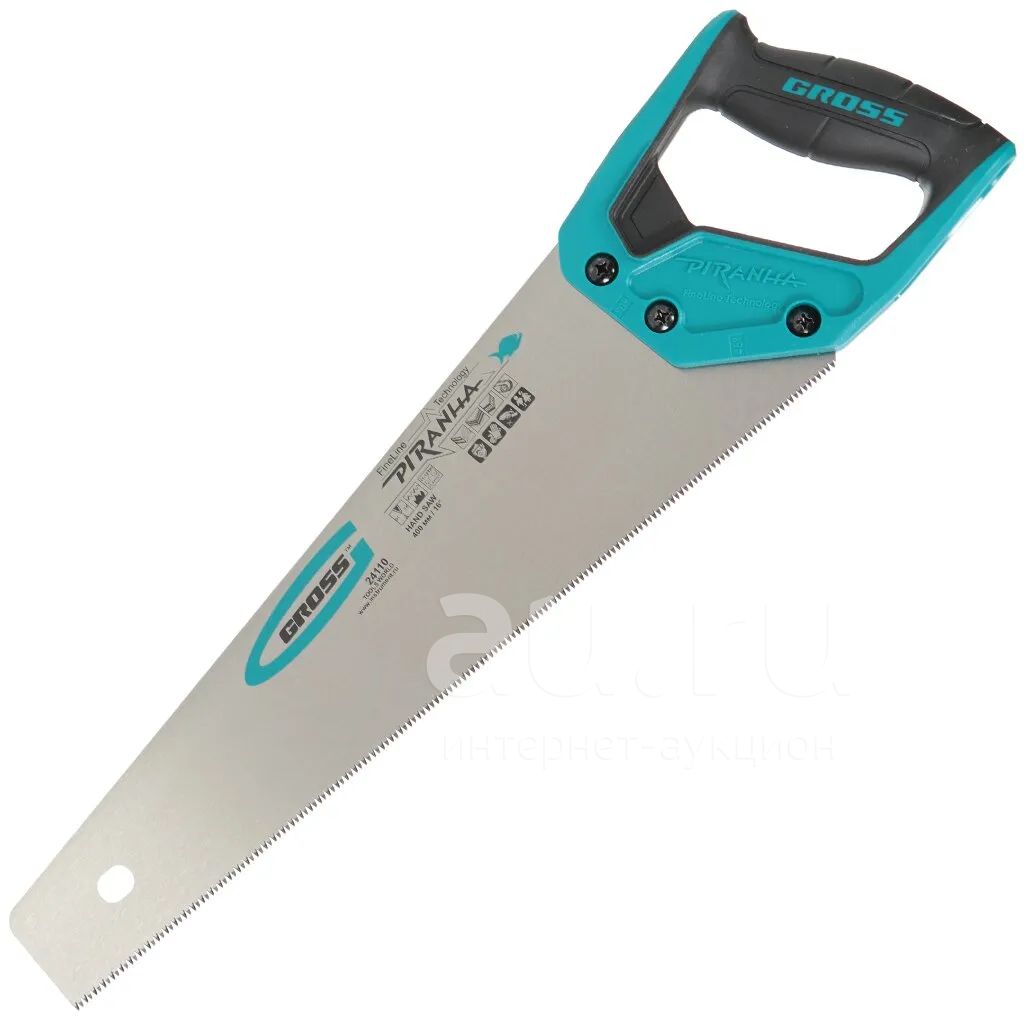 Ножовка Gross "Piranha" предназначена для столярных работ как с древесными композитными материалами: ламинатом, ДСП, ДВП, МДФ, так и с синтетическими: пенополистиролом, полиуретаном. Полотно ножовки длиной 40 cм изготовлено из прочной японской стали SK-5. Поверхность полотна обработана антикоррозийным полимерным покрытием. Зубья ножовки имеют трехгранную заточку, что позволяет работать максимально качественно и быстро. Двухкомпонентная рукоятка ножовки изготовлена из ударопрочного пластика, а эргономичная форма делает ее комфортной для рук даже при интенсивном пилении.