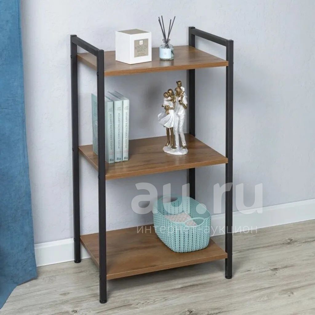 Полка-стеллаж универсальный, ДСП, сталь, 3 секции, 34х49х84.5 см, таксония черный, Loft