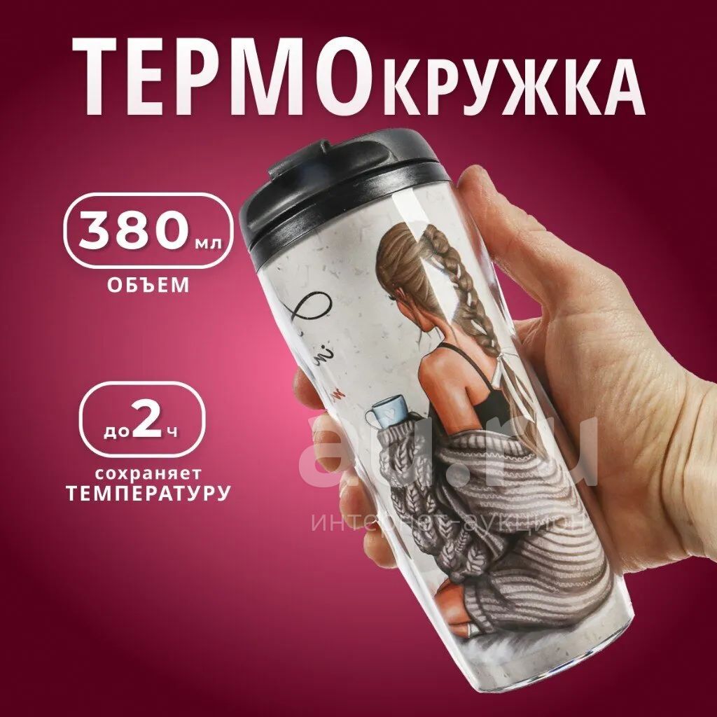 Термокружка Daniks «Девушка и мечты», 0.38 л: стильный выбор для города, авто, спорта и отдыха. Держит тепло 2 часа, лёгкая и недорогая.