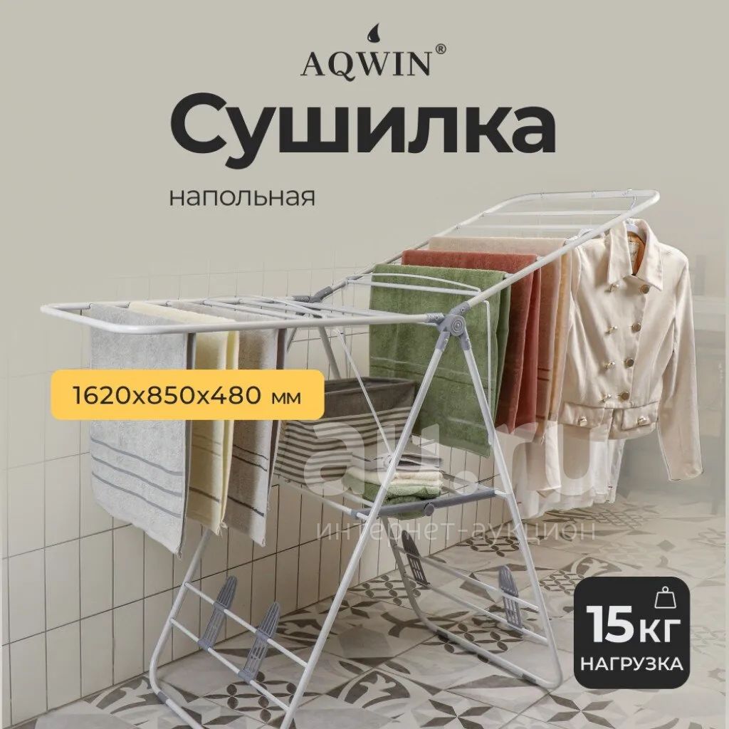 Сушилка для белья напольная, полотно 16 м, 2 уровня, 146х60х95 см, складная, с пластиковыми вставками, бело-серая, Aqwin, Бабочка, VPF04