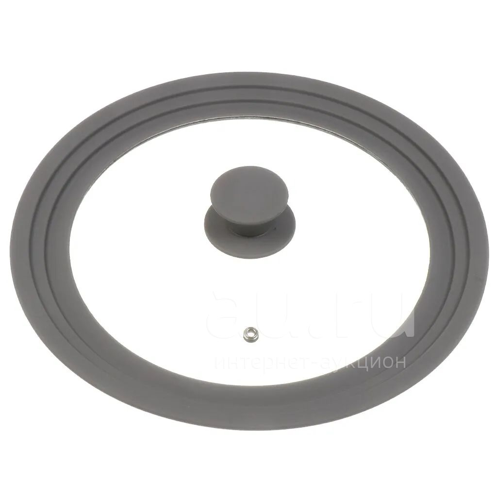 Крышка для посуды стекло, Daniks, кнопка силикон, серая, 24/26/28 см, GLM-242628-3