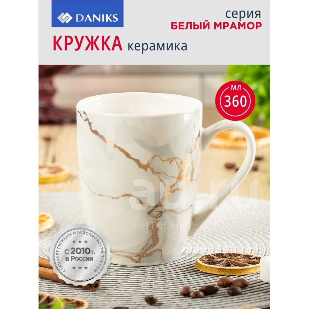 192руб.Кружка керамика, 360 мл, Белый мрамор, Daniks