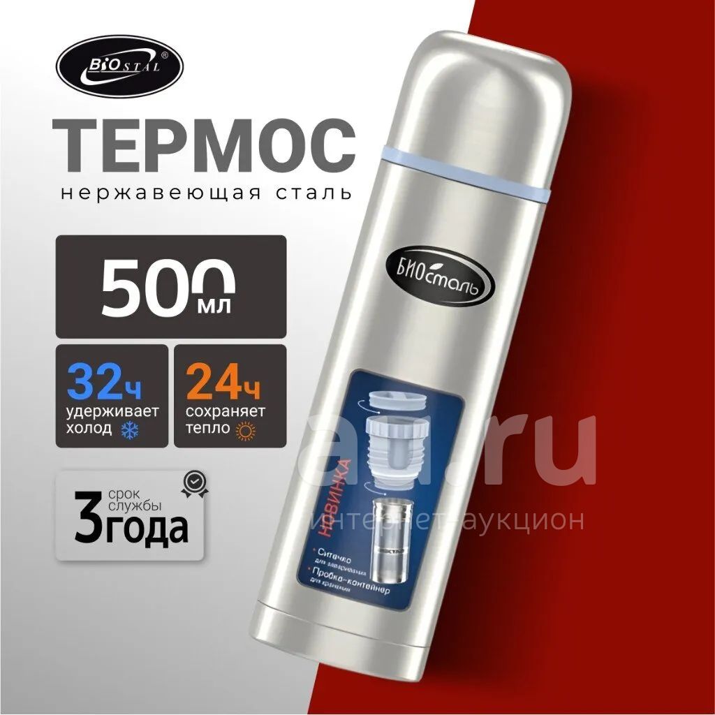 192руб.Термос нержавеющая сталь, 0.5 л, узкая горловина, Biostal, колба нерж...