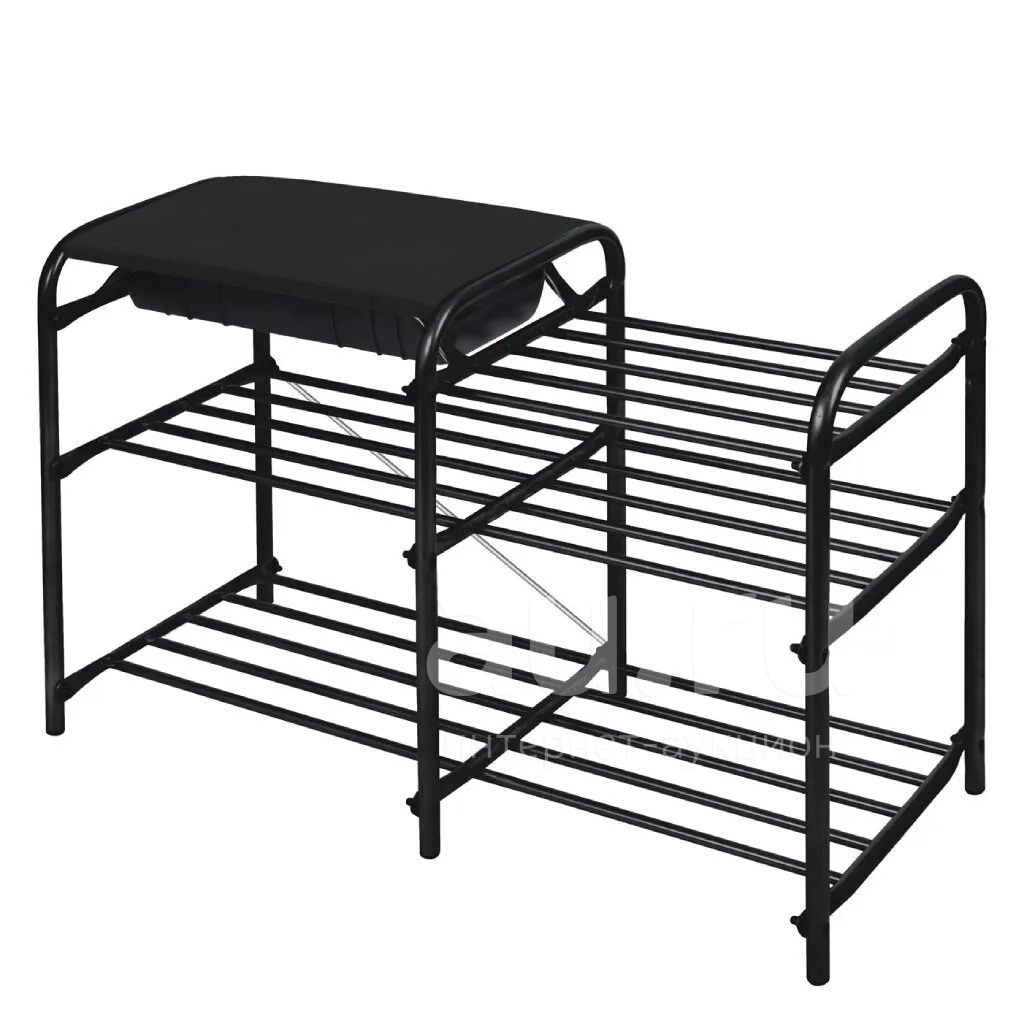 Полка для обуви металл, 3 секции, 79х33х51 см, с сиденьем и ящиком, сиденье, ящик, черная, Nika, ЭТЛ5-1/Ч