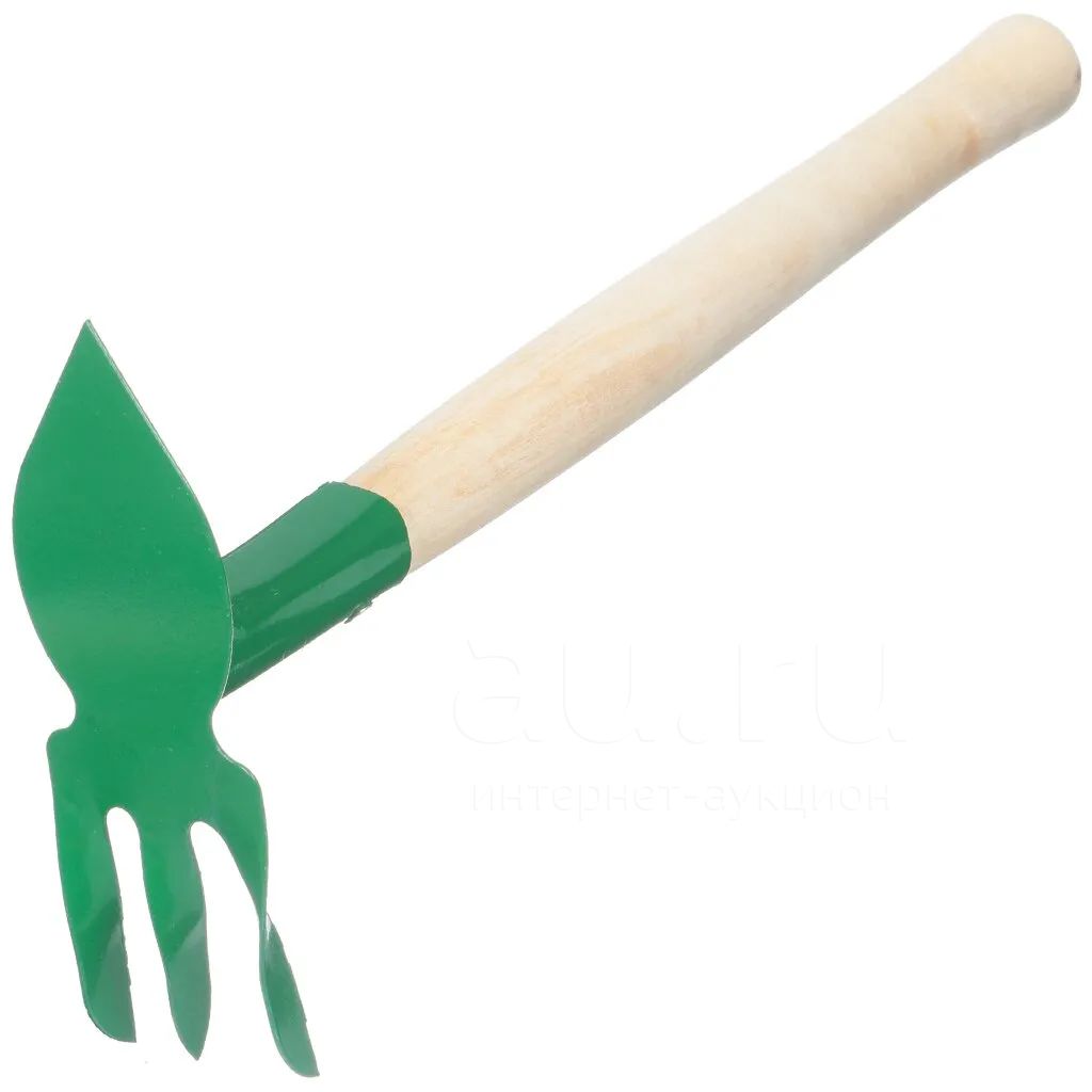 Мотыжка комбинированная 3 зуб, черенок деревянный, с рыхлителем, Лепесток