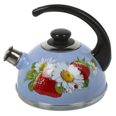 Чайник сталь, эмалированное покрытие, 2.5 л, со свистком, ручка консольная, Рубин, Абрикос, синий, T04/25/05/31/H03