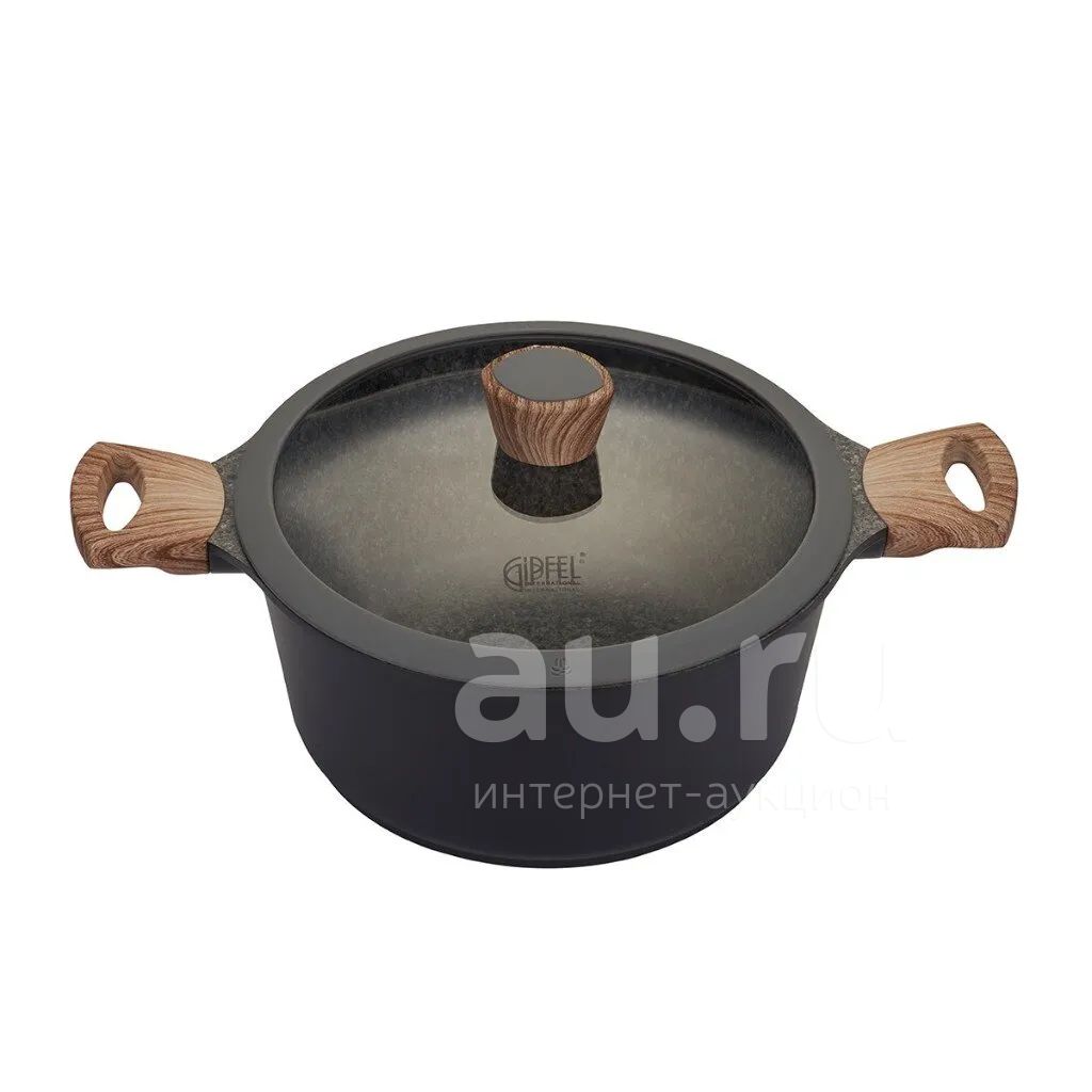 Кастрюля алюминий, антипригарное покрытие, 4.3 л, с крышкой, крышка стекло, бакелитовые ручки, Gipfel, OLIVER, 0572, индукция