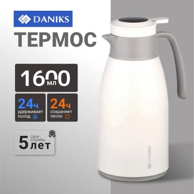 Стильный и функциональный термос-кувшин Daniks сохраняет температуру до 24 часов. Проконтролировать ее Вы можете с помощью датчика температуры, установленного на крышке. Такой термос удобно брать с собой на природу, прогулку или работу.