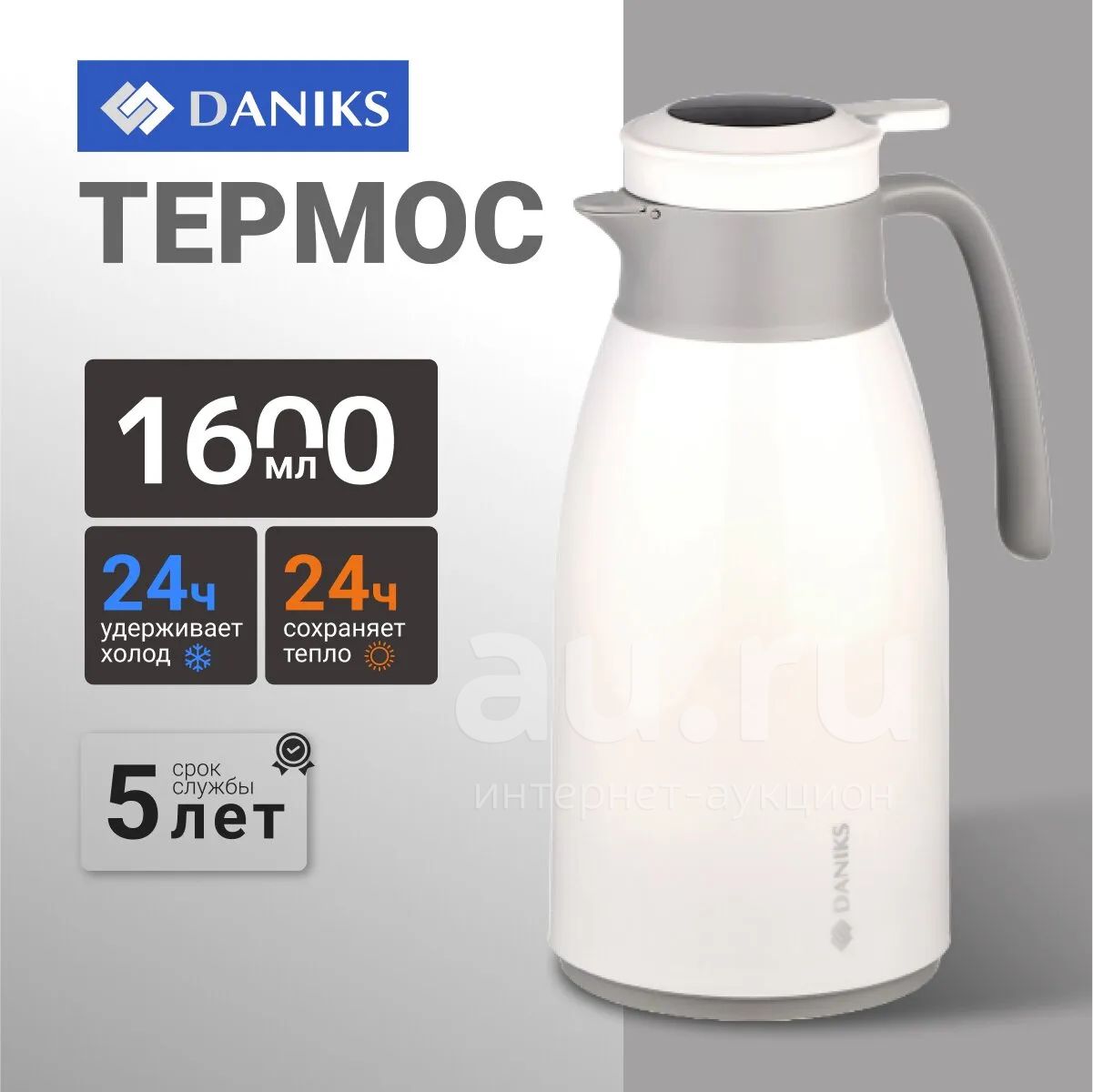 Термос-кувшин пластик, 1.6 л, Daniks, колба стекло, с датчиком, белый, ED-160-white