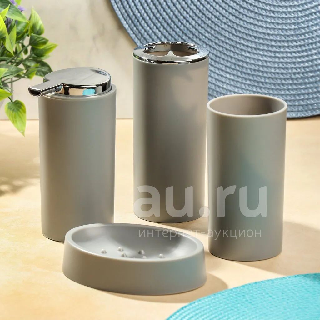 Набор для ванной 4 предмета, серый, пластик, стакан, подставка для зубных щеток, дозатор, мыльница, Y6-10724