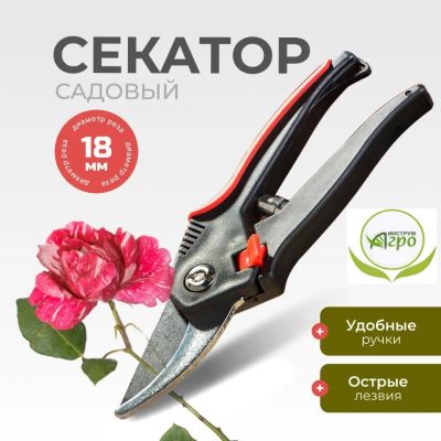 Секатор для весенней и осенней обрезки деревьев, 280 мм, Инструм-Агро, СТ-18, рукоятка резина, 010107-1