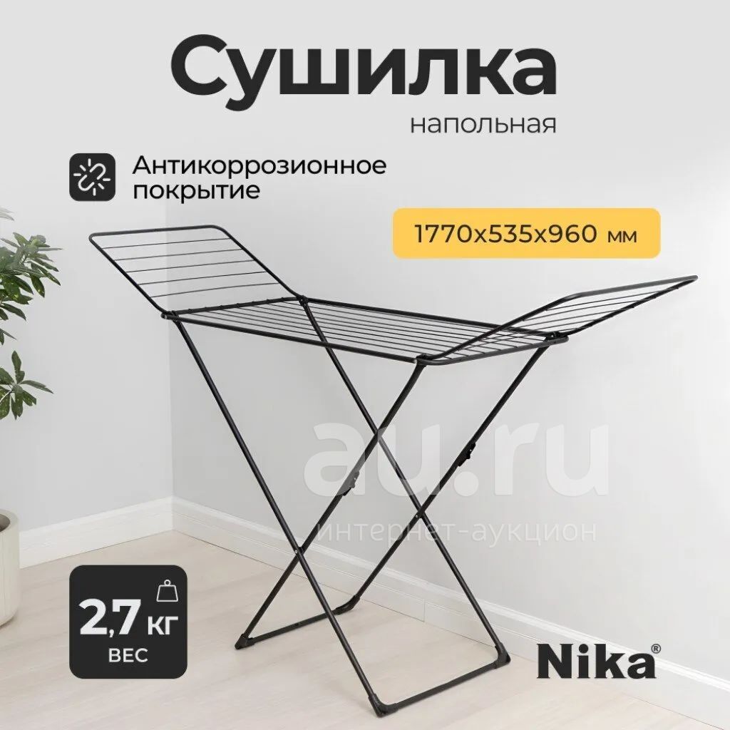Сушилка для белья напольная, полотно 18 м, складная, 18 прутьев, 15 кг, черная, Nika, СБ1/Ч