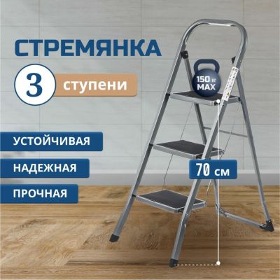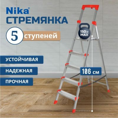 Стремянка Nika - это надежный и удобный инструмент для выполнения задач на высоте. Она имеет одну секцию и три ступени, что делает ее удобной в использовании в домашних условиях. Стремянка выполнена из прочной стали, что обеспечивает ее долговечность и надежность. Она выдерживает до 150 кг веса - это позволяет использовать ее для выполнения работ в доме, саду или на строительной площадке.