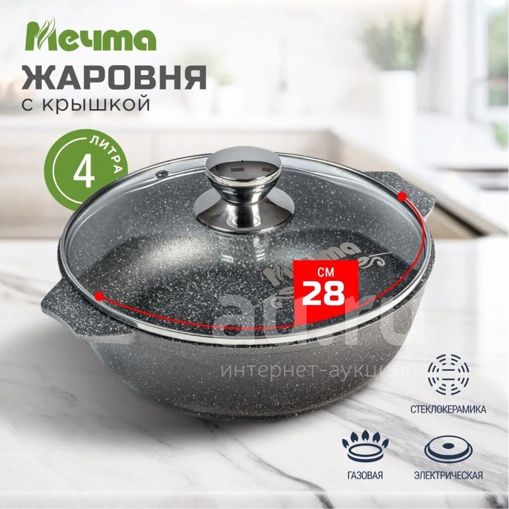 Жаровня алюминий, 28 см, 4 л, антипригарное покрытие, Мечта, Гранит, 34701, с крышкой