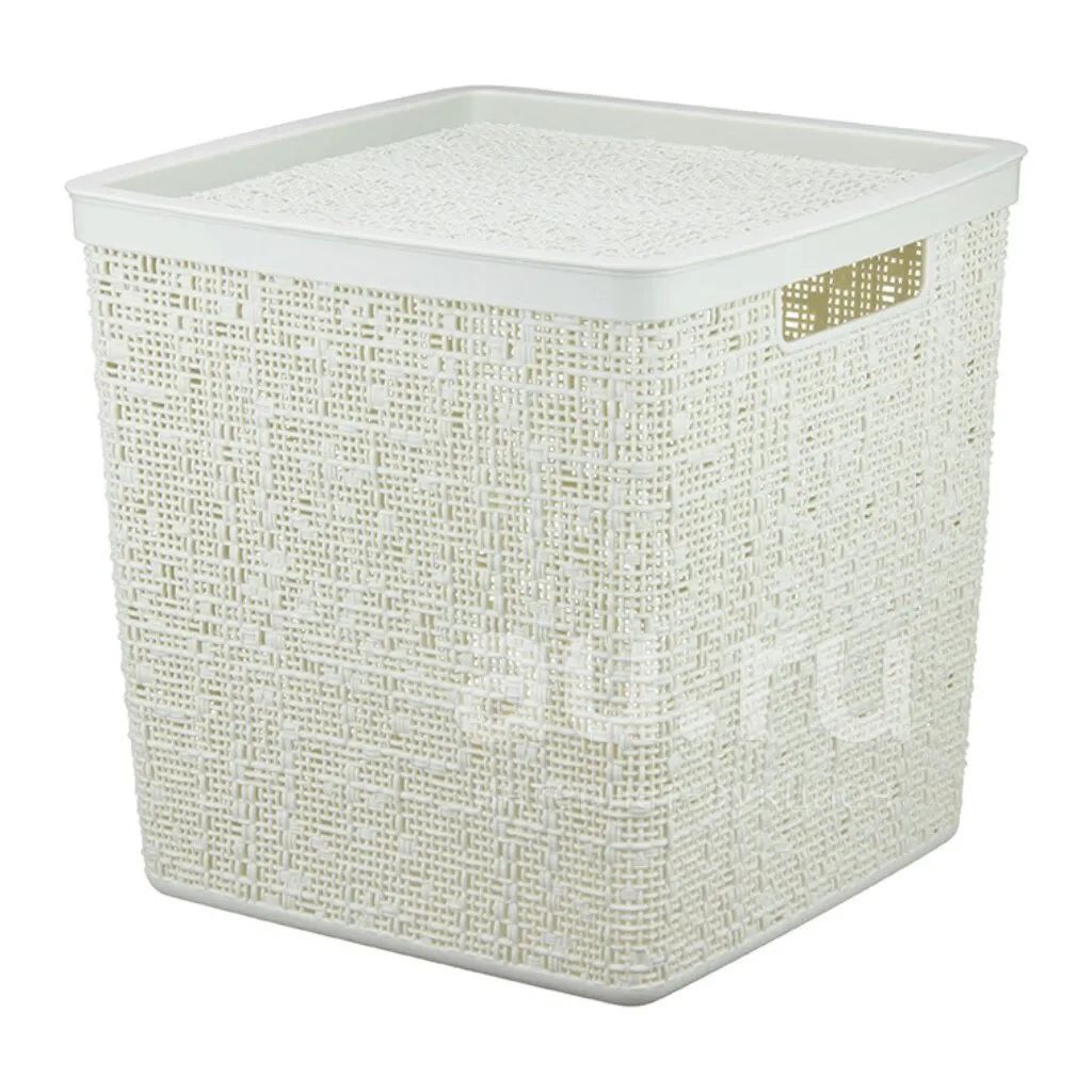 Ящик хозяйственный для хранения, 17 л, 28х28х28 см, с крышкой, белый ротанг, Idea, Бязь, М 2327