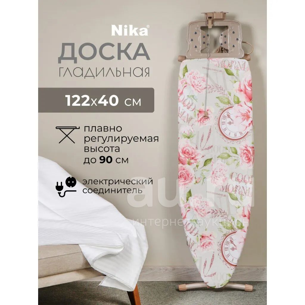 Доска гладильная 122х40 см, Доброе утро, подставка для утюга, гладильный рукав, встроенная розетка, полка для белья, Nika, Н9/14, разноцветная