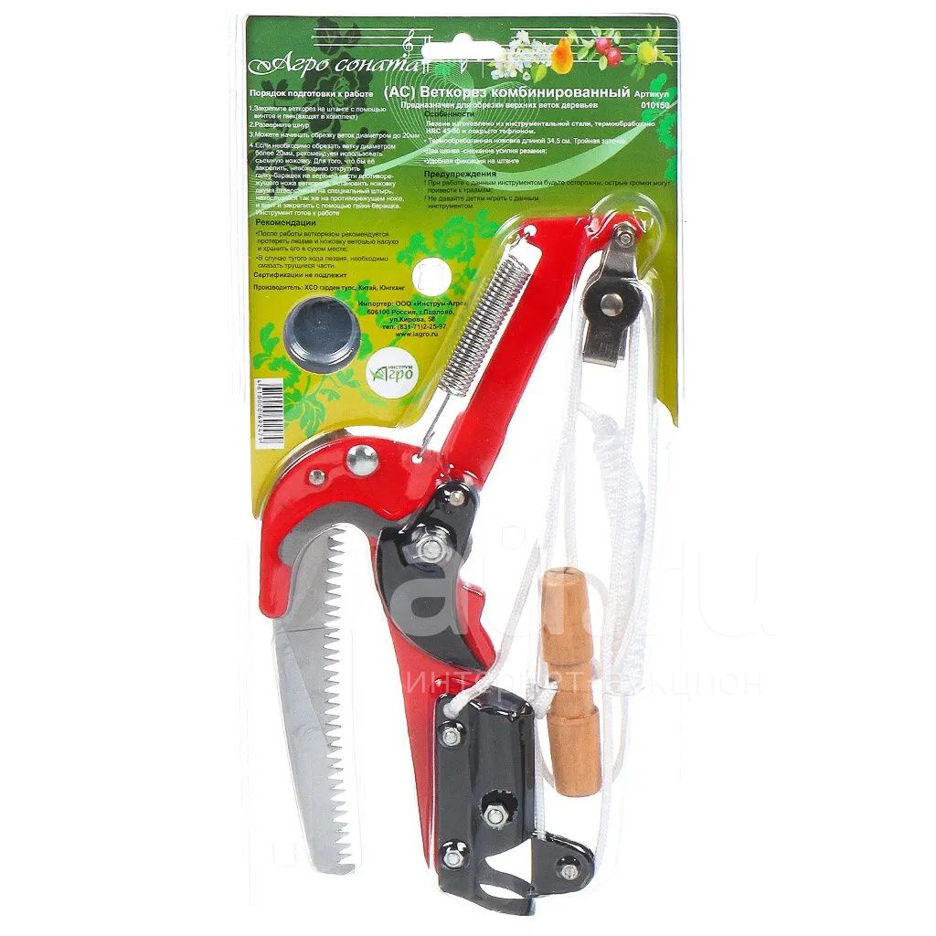 Секатор для веток, с ножовкой, комбинированный, с шнуром, 010150