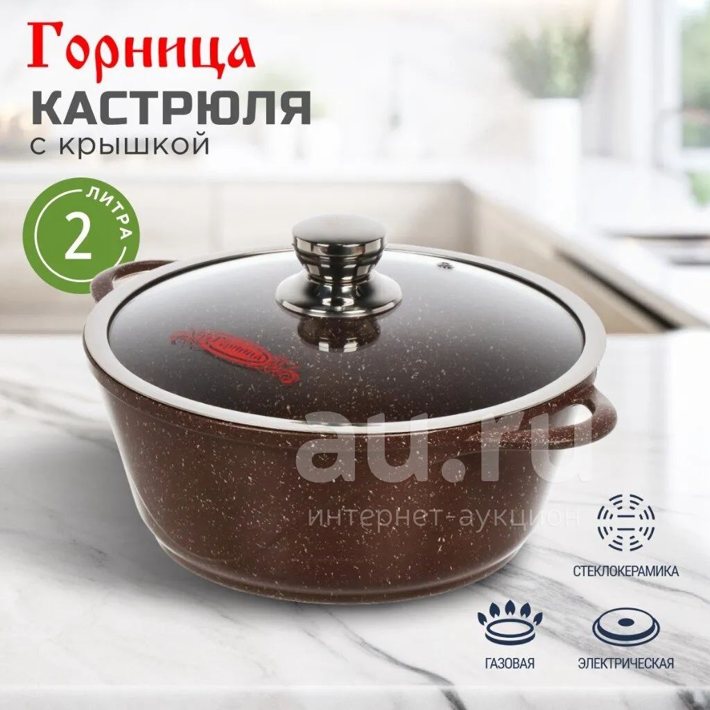Кастрюля 2 л Горница Шоколад — идеальный выбор для дома и дачи: антипригарное мраморное покрытие, стеклянная крышка, подходит для супа, плова, пюре.