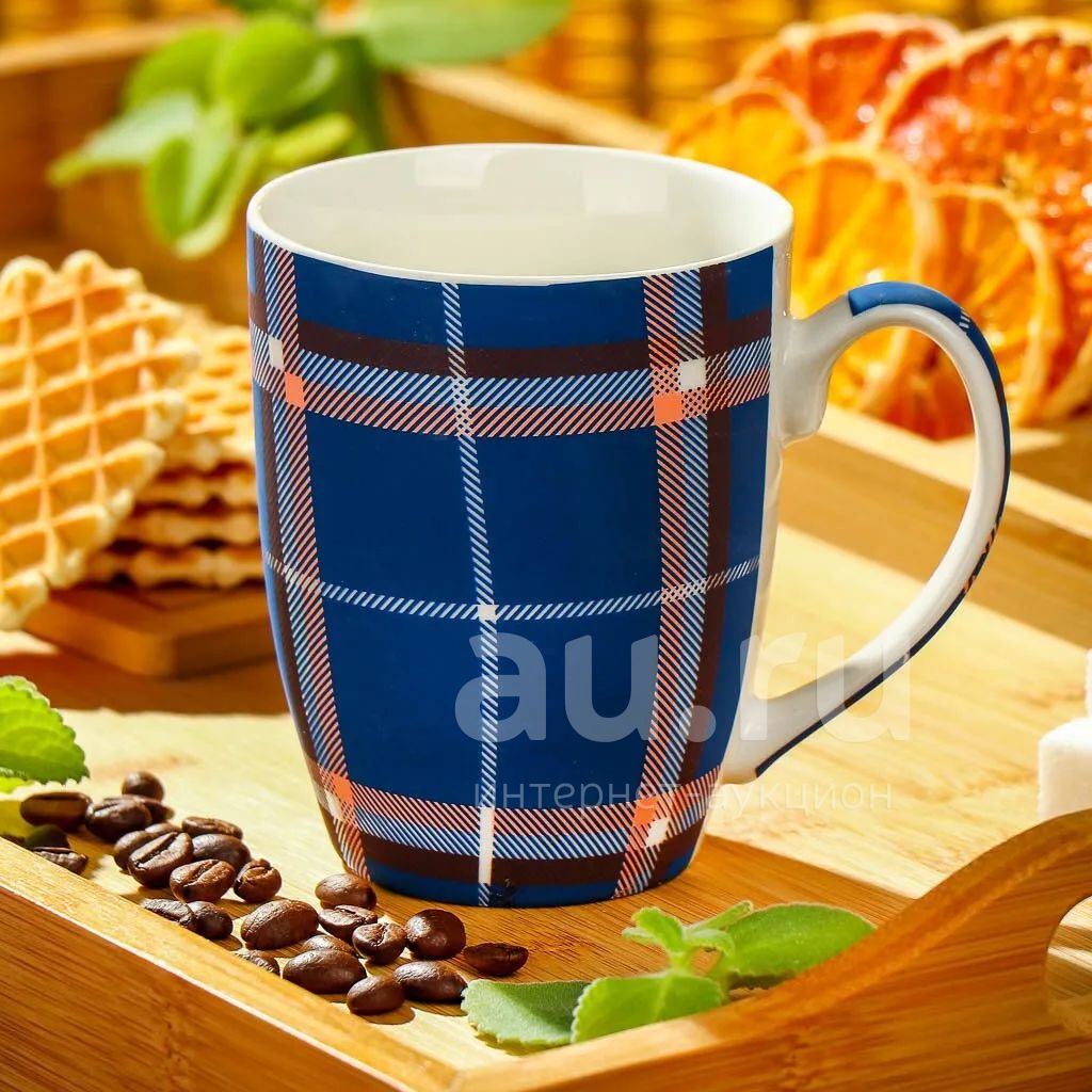 Керамическая кружка 350 мл «Синяя клетка» — стильный выбор для дома и офиса: подходит для СВЧ и посудомоечной, универсальный подарок на каждый день.