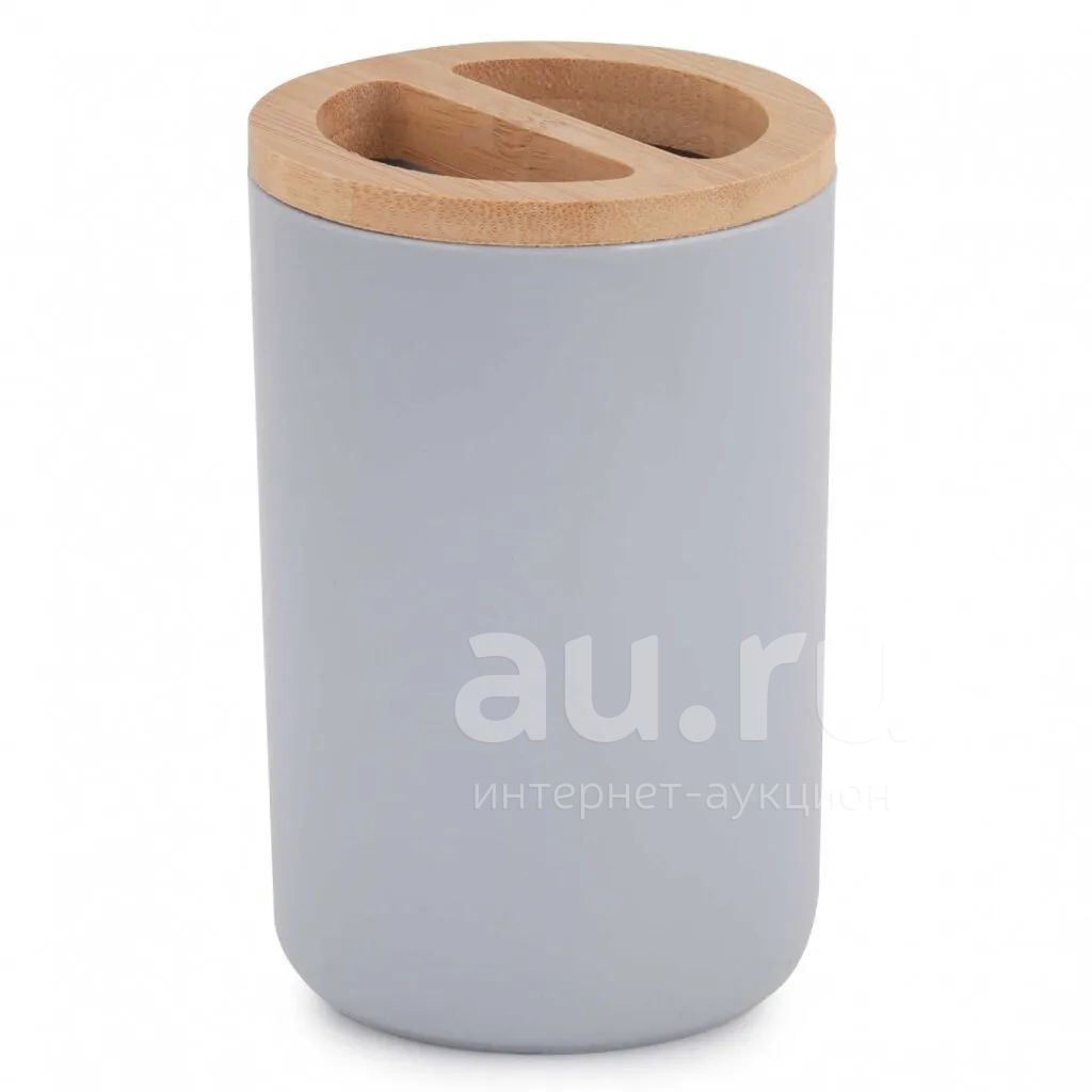 Стакан для зубных щеток, пластик, серый, Альтернатива, Бамбук, М8057