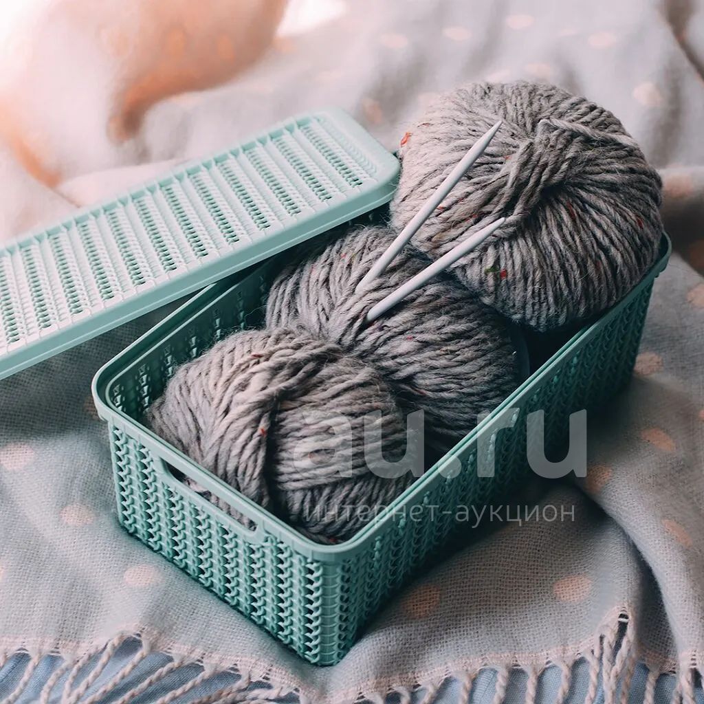 Корзина для хранения, 6 л, прямоугольная, плетеная, пластик, фисташковая, с крышкой, Idea, Вязание, М2370