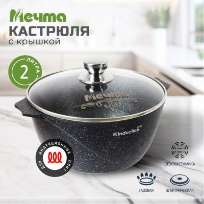 Кастрюля 4 л «Мечта Гранит star» — антипригарное решение для дома и дачи: прочный алюминий, стеклянная крышка, долговечность и легкость ухода.