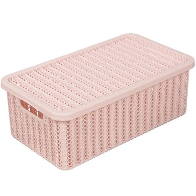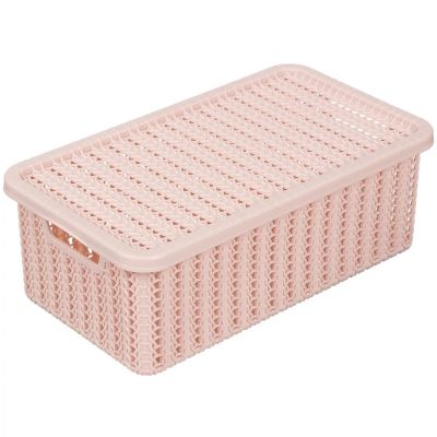 Корзина 1.5 л, прямоугольная, плетеная, пластик, чайная роза, с крышкой, Idea, Вязание, М2368
