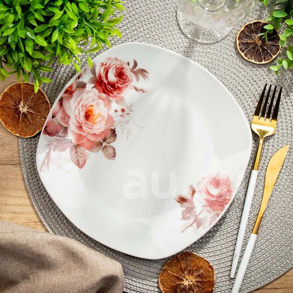 Тарелка обеденная, керамика, 24 см, квадратная, Розы, Daniks, 17-023